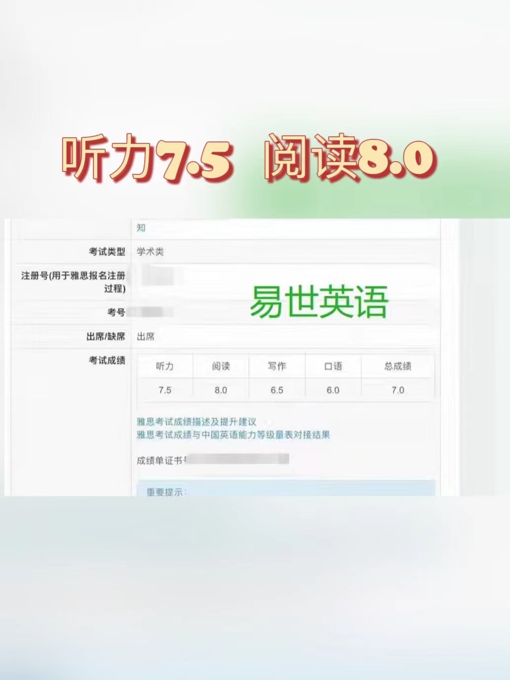 寒假在易世英语学了一个月,最开始是打算考托福。托福可以说是地狱级难度,考了几次,发现不太行,于是立马向老师寻求帮助。老师先问了我的目标院校,告诉我这个学校是可以接受托福和雅思的成绩,既然托福考了这么久没有达到目标,不如选择雅思。一语惊醒梦中人,我立马就来易世报名了寒假的雅思集训。