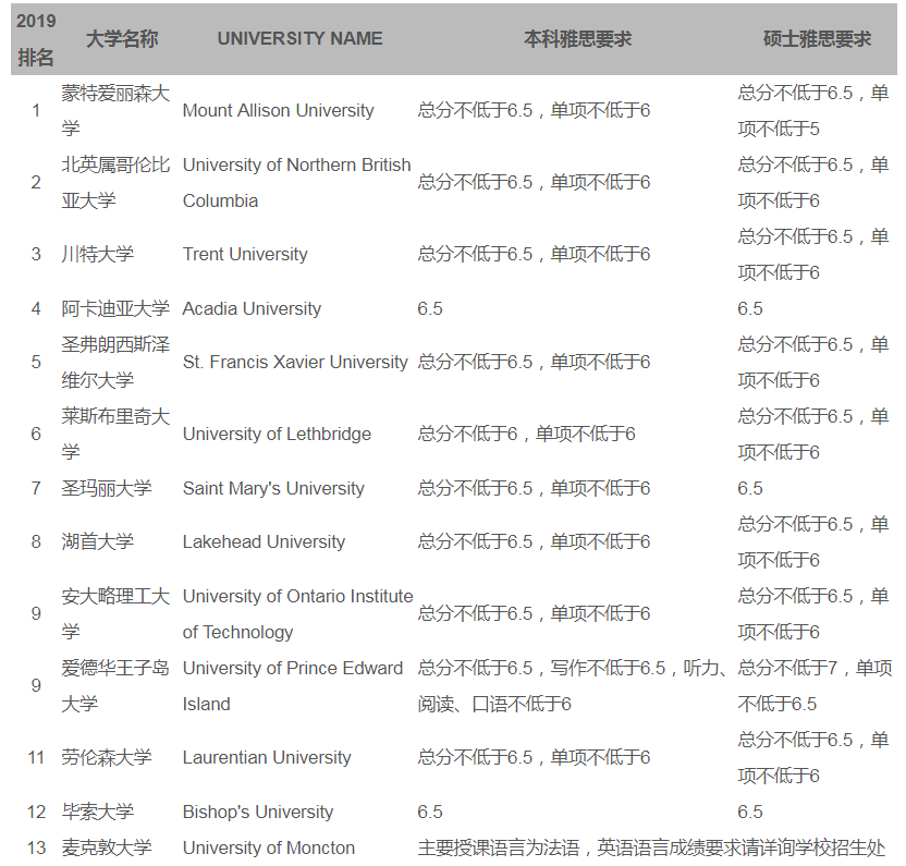 加拿大留学的宝宝,赶快和意思君一起来看看2019加拿大留学大学的学校排名和雅思要求吧!