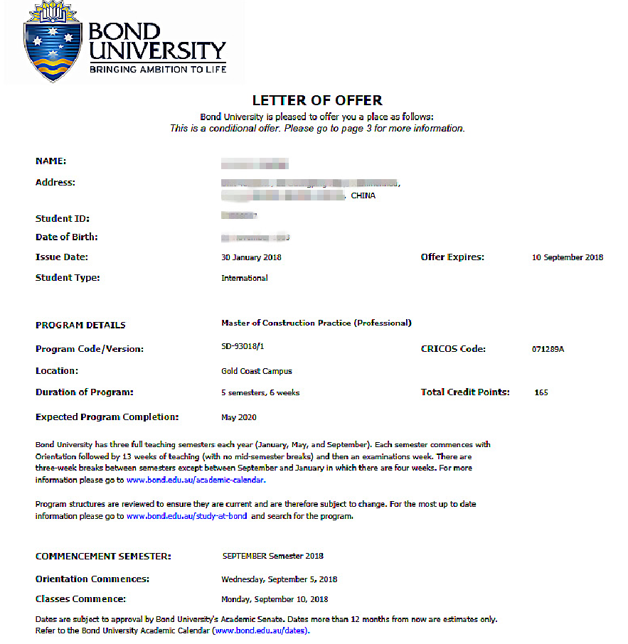 在2018年初,我陆陆续续收到了很多offer,其中我最满意的便是Bond University的offer,一想到今年9月10号星期一我就可以去报名,在新的地方展开新的旅程,我就开心的忍不住想跳起来。而这一切,多亏易世英语所有老师的悉心指导,真的非常感谢你们!