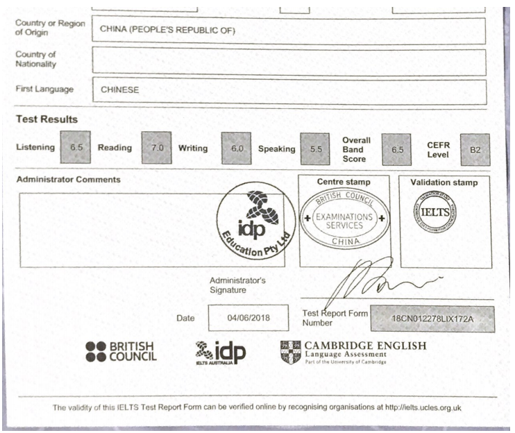 入学测评总分:5.5分 提升分数:听力提升1分,阅读提升1分,写作提升0.5分,口语提升1分,总分提升1.5分。 考试时间:2018年6月30号 录取大学:英国利兹大学。