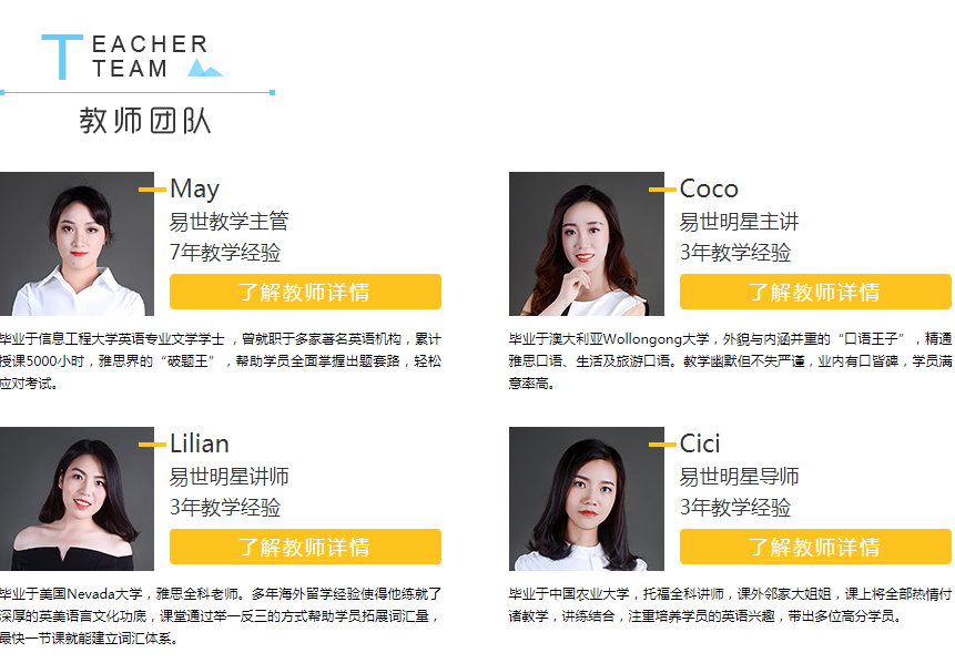 意思君家的高学历海归雅思名师,雅思场上身经百战的常胜将军,更有雅思满分获得者哦!呐,请往下看~