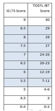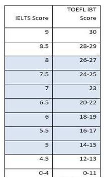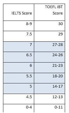 雅思和托福写作分数换算表